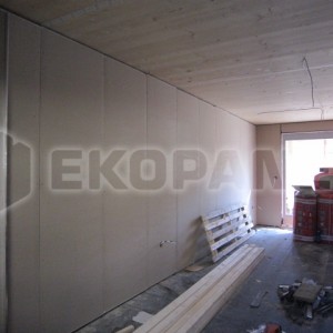 The Ekopanely board is used for the non-supporting acoustic partition walls and as cladding insulating material for the exterior walls including ceilings.